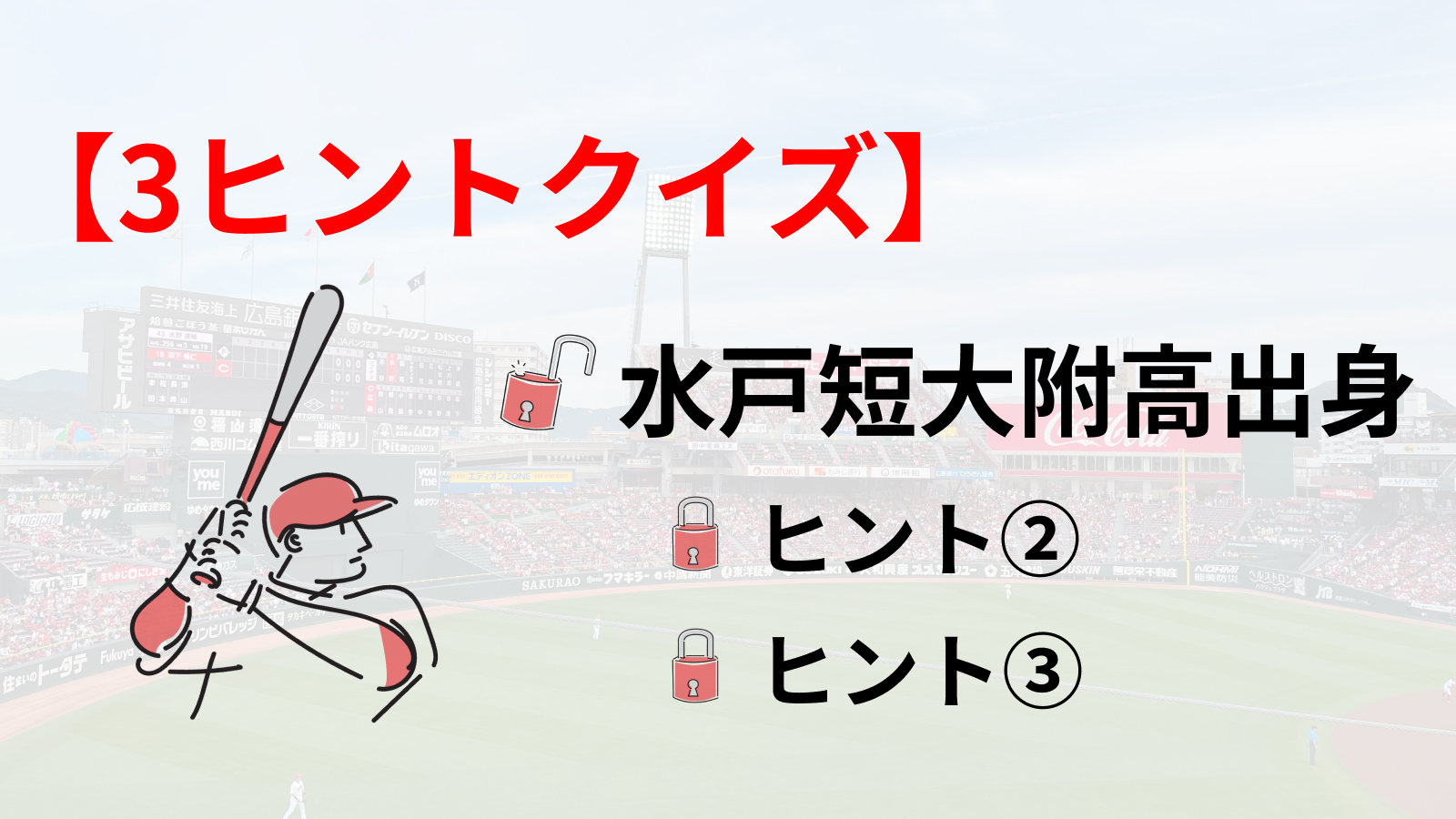今回は、3つのヒントからカープの選手を当てるクイズを作ってみました(第18弾!)。